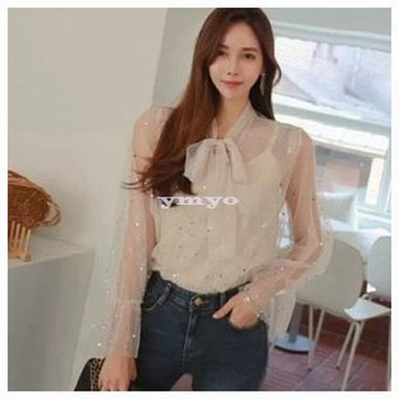 レースブラウス ブラウス シャツ 総レース オーガンジー ラメ スパンコール ボウタイブラウス ギャザースリーブ 春ブラウス ミニマルコーデ シンプル ベーシッ 通販 Lineポイント最大0 5 Get Lineショッピング
